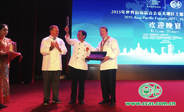 边疆副会长首先代表中国烹饪协会对世厨联各国来宾表示热烈欢迎。世厨联主席查尔斯·卡罗尔在致辞中说,中国近年来在餐饮事业有了快速的发展,所取得的进步和成就举世共睹。他很高兴地看到亚太主席峰会来到中国,他一直期待着此次中国之行。主席先生与各国来宾分享了他的从厨哲学:厨师的灵魂就是真诚地为人类服务,它关系服务和被服务者彼此的利益。我们要坚守那份进入厨师行业的初衷:以人性化的视角,为民众服务。