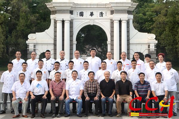 川湘美食主理名厨与清华大学厨师团队在紫荆园餐厅前合影留念