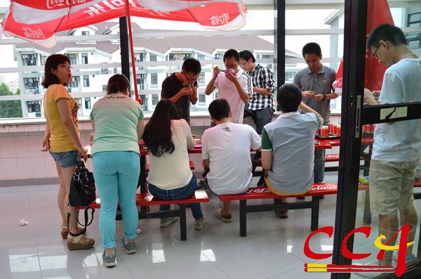 清华大学饮食服务中心在紫荆园餐厅的四层运转美食节,可以看到每到饭点甚至还不到饭点,四层的每个窗口前就排起了“九曲十八弯”的长队。清华学子也都通过微信、校内的家园网等途径抒发着自己对美食的热衷与自己对美食的理解和评价,如果在现场你可以看到很多学生吃一口美食,便拿起手边的手机在微信中拍照发图片与朋友分享自己体会的画面。点开清华校内家园网站,即可看到标题为川湘美食“大赞”的贴子,这对辛苦在厨房的师傅是极大鼓励。还有学生总结并分享了很多条排队经验发在微信上,例如:“带上小伙伴,只有带上小伙伴才可以用最少的钱和时间吃到最多的菜,建议4人左右”;“可以12:45出发到食堂,这时候排队的人比较少而且菜式几乎没有减少多少”;“来瓶可乐”,可谓妙招奇出。