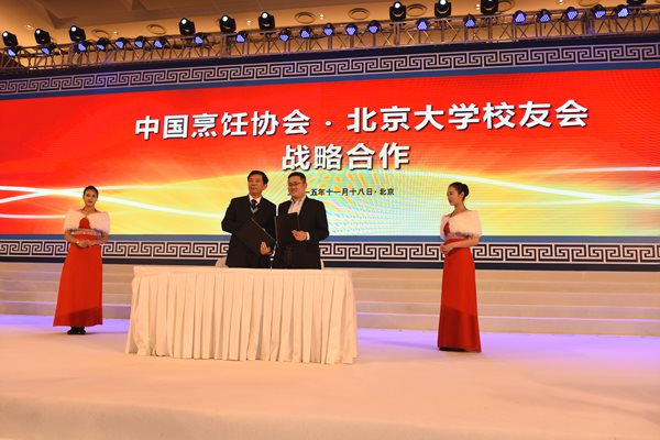 中国烹饪协会会长姜俊贤与北京大学校友会副秘书长王健正式签署战略合作协议