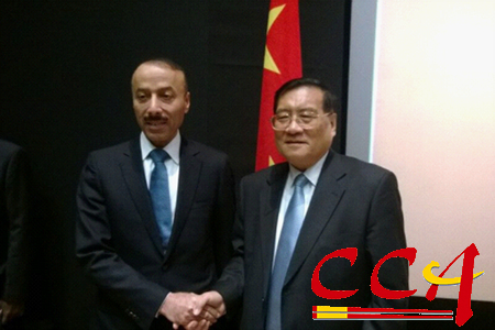 发布会上,李亚光副会长与卡塔尔驻华大使苏尔坦·曼苏里进行友好交流并合影留念