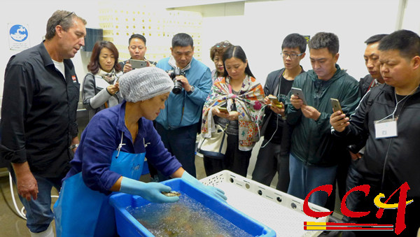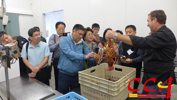 克里斯先生首先向中国代表团介绍了在澳洲当地最具盛名的鲍鱼及龙虾的生态养殖环境,讲解了公司从农户手中收购野生鲍鱼、龙虾在公司储存池中存放、装箱、运发到世界各地的全套现代科技手段和保鲜、保净的技术。在公司负责人生动有趣的介绍中,团员们品尝了万能蒸烤箱7分钟加工的熟鲍鱼,科学的加工工艺和鲍鱼鲜嫩、富有弹性的口感让考察团的中餐专家们赞不绝口。克里斯先生从储存箱中捞起一支硕大的龙虾并告诉大家,它的年龄已经20多岁了。