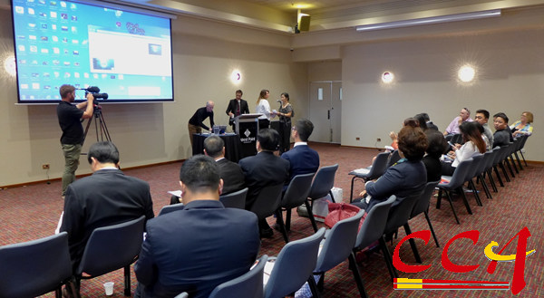 下午,考察团一行返回霍巴特联邦集团来朋酒店,在酒店会议室参加了澳洲野生鲍鱼知识专业培训讲座。塔斯马尼亚政府国务院发展部部长助理、南极海产研究所博士克雷格·曼迪、南澳洲研究与发展学院博士汤姆·马迪根等专家向中国考察团介绍了2016年澳洲野生鲍鱼协会相关活动计划、澳洲野生鲍鱼知识以及食品安全报告、海产品供应模式等相关资讯。讲座结束时,澳洲野生鲍鱼协会向每位团员颁发了《澳洲海产专业知识培训证书》。团员们纷纷表示,作为一种很好的交流手段,这样专业的培训讲座十分重要,为此次考察的卓有成效打下了基础。