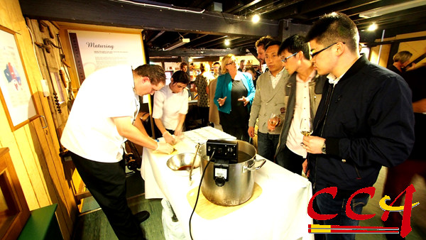 傍晚十分,代表团来到Lark Distillery酒坊,考察这里用中国式红烧糖心鲍鱼与威士忌酒相配的配餐方式,酒厂总裁比尔·莱克先生与糖心鲍鱼公司董事杰姆士·特兰诺瓦斯基把他们创作了五年的结晶拿给中国美食专家们品鉴。虽然对于考察团的中餐专家和名厨们来说,这里红烧鲍鱼的技术出品还有待提高,但中国烹饪技艺和英式威士忌酒品鉴两种文化的结合与两家公司国际品牌化推广模式得到代表团员们的充分肯定,朱杰、高彦明、陈浩三位名厨为红烧鲍鱼的改进提出了颇具技术性的建议,边疆团长把中国烹协会旗赠送给了酒坊总裁,比尔先生认为这是最高的认证和荣誉,当即把会旗挂在了酒坊最明显的位置上。