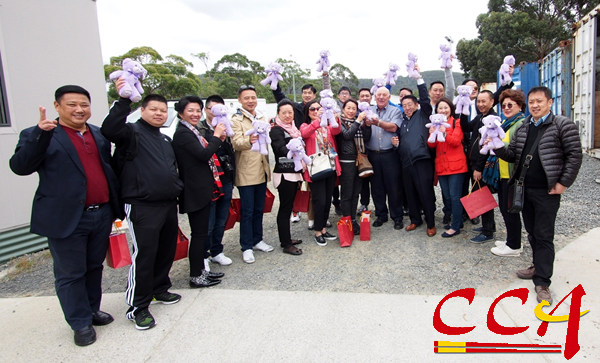 在快艇上的简单午餐后,考察团一行应邀来到马尔盖特考察塔斯马尼亚海产公司。这家海产公司是澳洲野生鲍鱼协会五大原始成员之一,出品鲜活、罐装、袋装海产品,公司总经理带领考察团参观了野生鲍鱼流转养殖加工工艺,向考察团介绍了野生鲍鱼的活体运输环境、深达2米的捕捞箱、短期储存仓库、加工车间及鲍鱼的快速包装出厂过程,考察团福建、安徽、浙江的几位企业家对鲍鱼到中国的运输、保鲜和价格进行了细致地询问,安徽江南春餐饮公司的朱钢董事长还对鲍鱼内脏的综合利用提出了建议。临别前,边疆团长和孔健副团长向公司总经理先生赠送了中国烹协会旗和中国工艺纪念品。