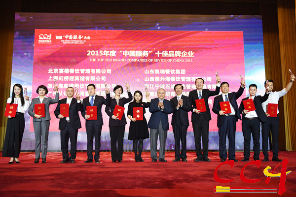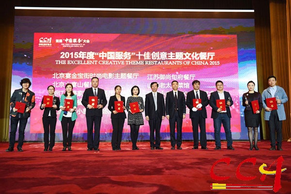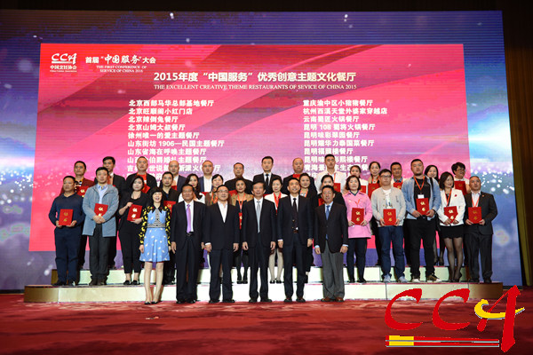 大会对2015年度全国餐饮服务行业优秀企业进行了表彰,北京宴禧餐饮管理有限公司等十家企业荣获2015年度“中国服务”十佳品牌企业称号;浙江外婆家宴西湖餐厅等十家餐厅荣获2015年度“中国服务”十佳创意主题文化餐厅称号;旺顺阁(北京)投资管理有限公司等三十家企业荣获2015年度“中国服务”优秀品牌企业称号;北京西部马华总部基地餐厅等三十家餐厅荣获2015年度"中国服务"优秀创意主题文化餐厅。中国烹饪协会向首批元老级、资深级和特殊贡献的中国餐饮服务大师进行了授勋。同时,中国烹饪协会聘任了10名"中国服务"导师。
