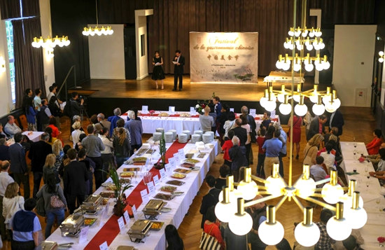晚宴在热烈的掌声中开始,何彦军总领事首先致辞,对法中贵宾的出席表示欢迎。费舍乐女士在讲话中说,拿破仑的外交官曾说,“只要给我一个好的厨师,我就可以把一切事情都做好”;中国的孔子曾经说“食不厌精脍不厌细”。中国美食和法国美食都是中西方美食的代表,享誉天下,中国尤其以丰富的食材和高超的烹饪技艺世界闻名。很高兴,今晚中法两国的民众带着同样对美食的热爱来参加我们的活动,希望中国美食节能每年在斯特拉斯堡举办,成为我们每年的约定。台下一片掌声,这掌声如同现场“公投”,表现了对中国美食之约的期待。