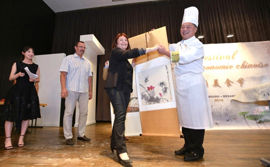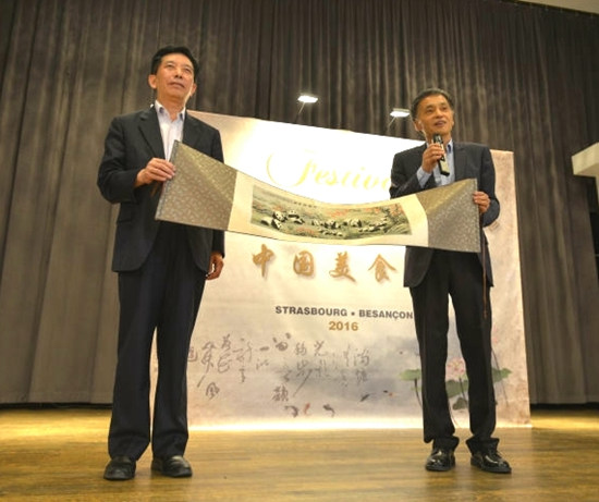 巴黎中国文化中心苏旭主任在讲话中说,巴黎中国文化中心与中国烹饪协会有过多次成功的合作经验,这次请大师们来到欧洲的中心城市——美丽的斯特拉斯堡市举办中国美食活动,必将会成为当地民众心中难忘的经历,也是中餐国际化发展的又一次成功经验。苏主任表示,中华美食博大精深、享誉世界,中餐申报世界非物质文化遗产,一定会成功。