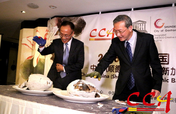 “均安蒸猪”获满堂称赞 大使部长亲手为鲍鱼菜“剪彩”