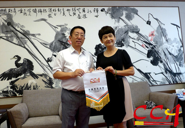边疆副会长向马红英主任赠送中国烹饪协会会旗