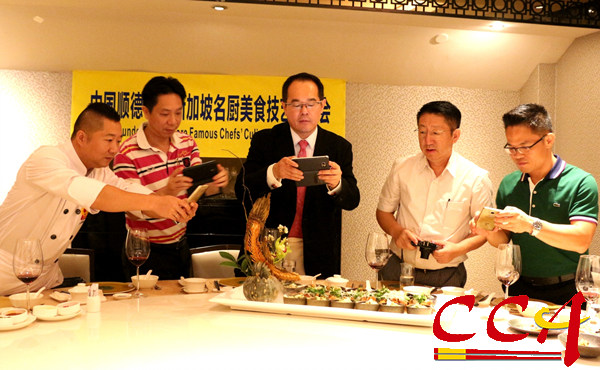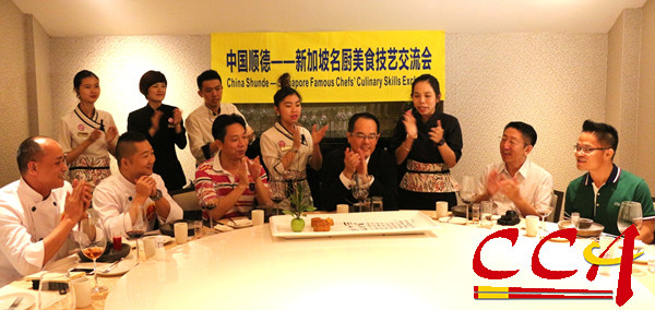 17日下午,代表团来到新加坡享有盛名的中餐酒楼同乐经典,来自广东顺德的四位名厨与同乐经典的名师展开了一场别开生面的交流活动。同乐餐饮集团董事主席周家萌给予代表团热情的接待。