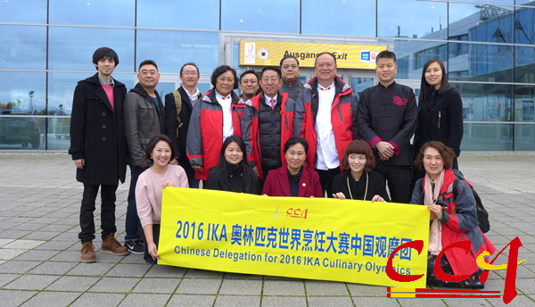 当地时间10月22日晚,在代表团副团长边疆副会长的带领下,2016奥林匹克烹饪大赛中国观摩团飞抵德国魏玛,团长姜俊贤会长将在23日出席中国厨师节主要活动后连夜飞抵埃尔福特。中国观摩团阵容也十分强大,山西餐投集团、河南阿五美食、北京云海肴、成都欧际、青岛文善等著名餐饮食品企业董事长、总经理和餐饮组织负责人都纷纷参团来观摩国际大赛、到现场为中国队加油喝彩,极大地鼓舞了国家队员们的士气。