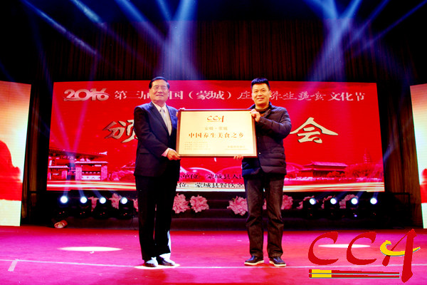 中国烹饪协会向蒙城县人民政府授予“中国养生美食之乡”牌匾