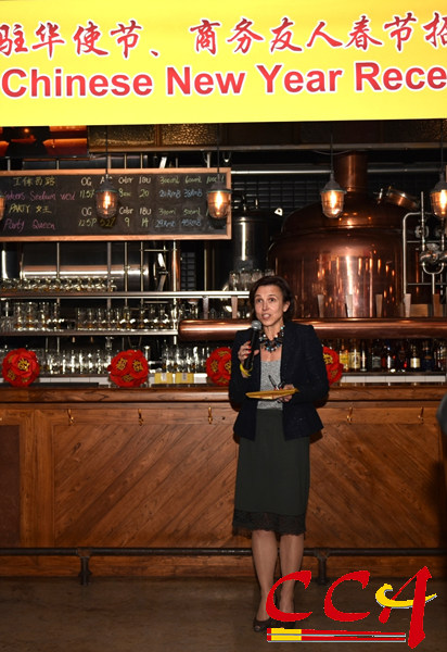 作为外国政府驻华机构代表,西班牙驻华参赞Anne Malia 女士发表了热情洋溢的致辞。她首先用流利的中文向来宾们致以新年的问候,使来宾们倍感亲切。Anne Malia 女士说,非常高兴能够参加这一美食的盛会。西班牙餐馆遍布中国,深受中国人民喜爱。西班牙的美酒、肉食以及甜点非常有名,希望更多的中国人能到西班牙亲自品尝,也希望更多的西班牙人能够了解中国美食文化,促进两国人民友好往来。公使的讲话虽然简短,但道出了美食对于增进在中国和西班牙之间友好往来的重要作用,也代表了世界各国人民对中国美食文化的认知和需要,博得了全场嘉宾热烈的掌声。