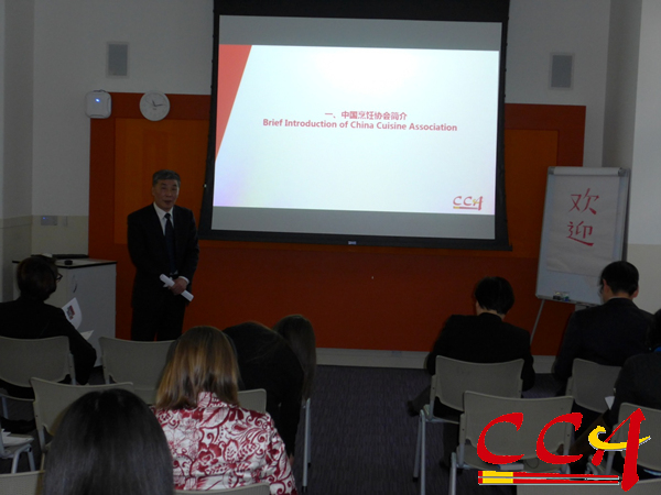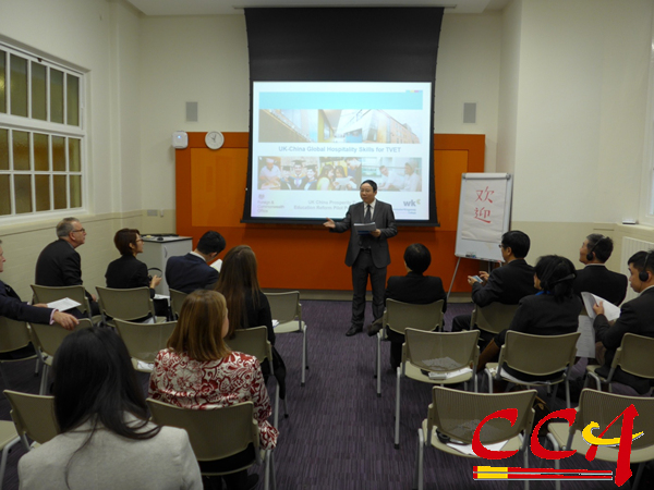 为充分交流, WKC还在培训中专门安排研讨会、邀请各位嘉宾就中国职业教育的发展情况、中国餐饮职业教育及中国餐饮行业的现状、中国对学徒制的适应情况等进行了专题分享。教育部职教所刘育峰教授、广东省教育厅郑文处长、中国烹饪协会秘书长乔杰等先后发表了专题演讲,深入分析了相关问题,使WKC高层对于中国的职业教育及餐饮职业教育的情况有了更加深入、全面的了解。尤其是乔杰秘书长的讲座,对于中国餐饮行业用工情况的介绍、餐饮企业用工难问题的介绍、中国烹饪协会利用全国餐饮行指委及协会教育委员会促进中国餐饮职业教育与行业相结合的情况、全国职业院校烹饪技能大赛的举办情况等问题进行了详细的介绍,带去了中国餐饮行业及餐饮职业教育最新的发展情况,受到英国方面的高度关注。