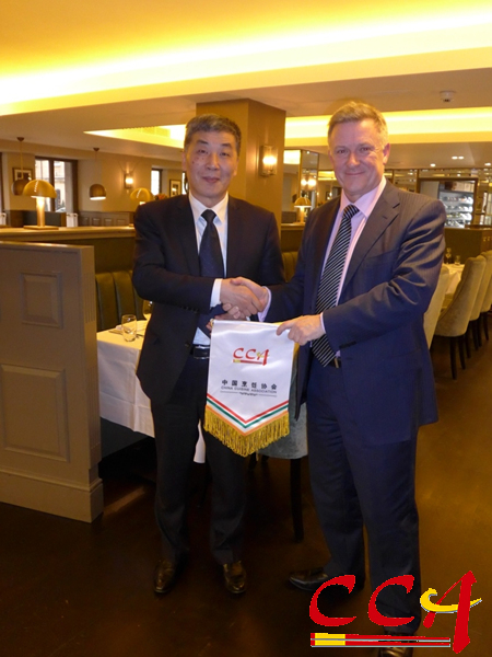 乔杰秘书长向英国餐饮教育专业协会会长杰夫•布斯先生赠送协会会旗