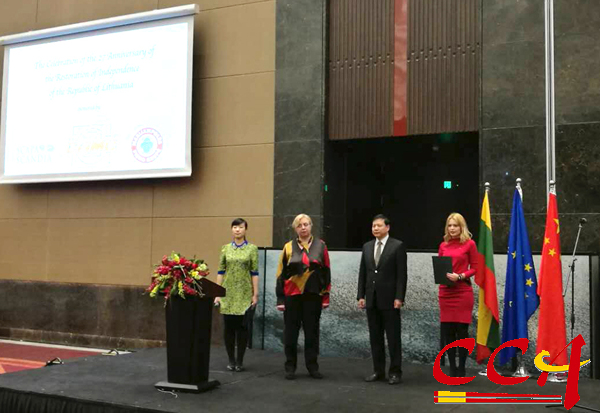 活动开幕式上,玛邱罗尼塔大使与钱洪山部长助理共同走上开幕式舞台中央,向各位嘉宾示意问候,并演奏了立中两国国歌。随后,玛邱罗尼塔大使发表了热情洋溢的讲话,她在讲话中表示热烈欢迎各位嘉宾百忙之中到场参加活动,恢复独立27年来,立陶宛走过了不平凡的道路,希望立陶宛今后继续得到国际社会的大力支持。活动场面热烈,各国外交官齐聚一堂,进行了友好交流,立陶宛驻华大使馆专门从国内邀请来了立陶宛著名音乐家在现场表演了立陶宛特色打击乐。