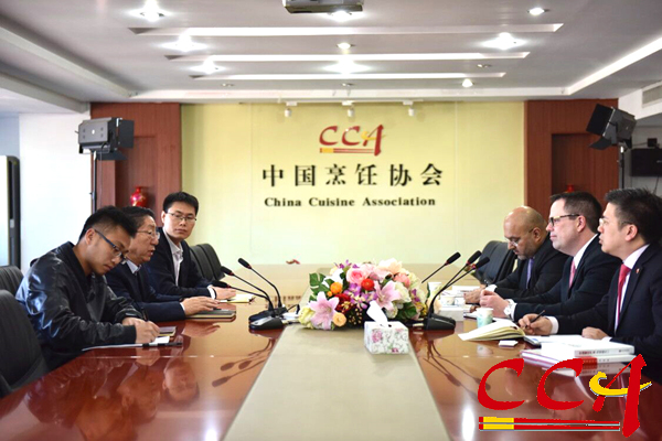 巴沙尔先生表示,非常荣幸有此机会能拜访中国烹饪协会,为促进巴林经济的发展,巴林政府目前在大力发展大旅游产业,巴林经济发展委员会作为巴林政府部门之一,在负责相关重要的工作,希望能与中国烹饪协会积极合作,共同促进两国的经贸往来与美食文化交流。巴林是海湾阿拉伯国家合作委员会(GCC)的重要成员,也位于GCC国家地理位置的中心,与周边重要国家通航距离都不超过一小时,交流非常便利。目前每周末都有35万沙持游客来巴林旅游,全年外国游客多达1200万,而巴林本国的人口才有120万,因此巴林有发展中餐的巨大潜力,希望中国烹饪协会能引导更多的中国餐饮企业赴巴林开店,满足去巴林旅游的游客的需要。