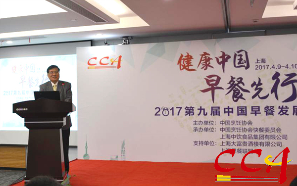 中国烹饪协会副会长李亚光在致辞中表示,早餐是人民生活离不开的三餐之首。自2007年以来中国烹饪协会坚持服务民生的方针,积极推进全国早餐示范工程建设,从制定早餐经营规范等行业标准入手,在创新早餐经营模式,完善早餐体系建设,打造早餐企业品牌,开展技术交流,确保食品安全等方面充分发挥了行业组织的促进作用。他指出,当前随着大众化餐饮市场的新需求新变化,按照党中央国务院提出的“健康中国2030”国家战略,对早餐行业发展提出了新的更高要求。为此,应着重做好几个方面的工作:1、认真研究市场需求与变化,开拓更加广阔的早餐服务市场和新兴领域。2、下力抓好食品安全与营养健康质量提升工程,向百姓提供安全放心、健康营养、经济实惠、物美价廉的满意早餐。3、创新早餐经营模式,打造优秀早餐品牌,逐步做强做大。4、加强中央厨房建设与产业链建设,向标准化、规模化、产业化方向发展。5、希望得到政府部门从扶持政策上的大力支持。他表示,在与各级政府、行业组织及餐饮企业共同携手努力下,积极推进早餐行业的创新发展一定会取得新进展新成就。