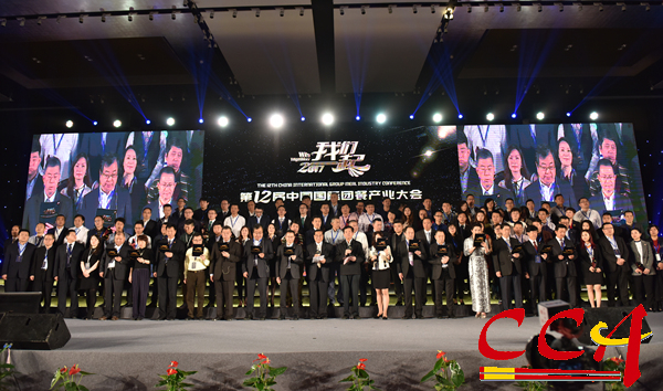 在姜俊贤会长带领下,中国团餐百强企业领导人一起朗诵:“致敬,中国团餐!”
