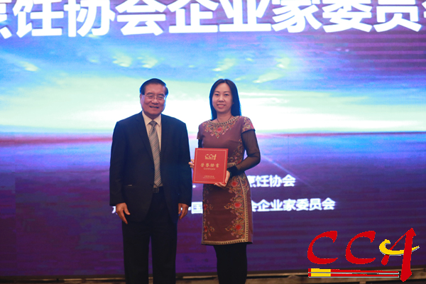 李亚光副会长向刘京京董事长颁发中国烹饪协会企业家委员会执行主席证书