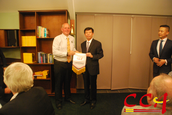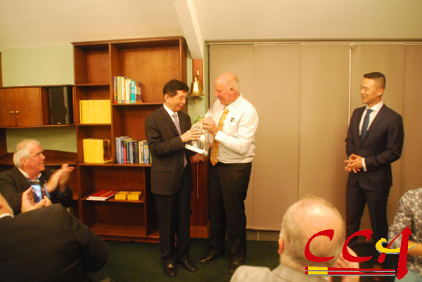 中央昆士兰大学校长Scott Bowman回赠姜俊贤会长礼物