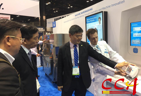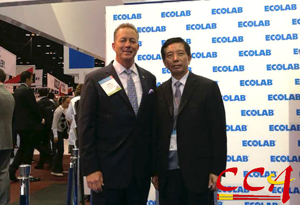 同时,姜俊贤会长也向美国艺康公司的主要领导介绍了中国烹饪协会及中国餐饮市场的发展情况,并代表中国烹饪协会与美国艺康公司签订了战略合作协议。姜俊贤会长表示,通过在此前对艺康集团大中华区总部的考察和这次亲临美国芝加哥NRA展会参观艺康展区的技术和产品,了解到美国艺康公司在水技术、卫生及公众健康安全方面有着全球领先的技术和研发团队,拥有6750项专利技术,其研发领域中的水处理、食品饮料加工、消毒清洗设备和餐饮洗涤剂等对中国餐饮行业提升质量安全水平具有积极的指导意义和促进作用。姜俊贤会长表示:“在芝加哥NRA展会上,我在艺康公司展区参观了大约一小时,主要源于该公司有餐饮全产业链系列先进技术和安全产品,像厨具清洁、用具清洗、蔬菜清洗等非常适合于中国餐饮企业的应用。相信此次双方达成战略合作关系,有助于共同携手为中国餐饮业的质量安全提升工程做出贡献。”