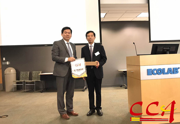 当地时间5月23日,芝加哥展会刚一结束,姜俊贤会长就率领19家企业25人组成的供给侧产业链赴美考察交流团从芝加哥“移师”明尼苏达的艺康公司总部。当地时间5月24日,姜俊贤会长和全体团员听取了艺康全球战略与销售资深副总裁徐昇宏介绍美国艺康公司在全球的发展情况,并参观了艺康研发中心和实验室,对艺康公司在食品安全方面提供的产品及服务方案有了更加清晰的了解。