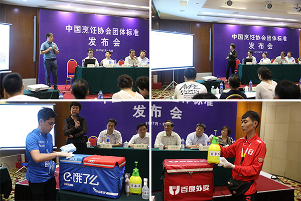 7月11日,中国烹饪协会团体标准发布会在北京召开,T/CCA 001-2017《中国烹饪协会团体标准编写指南》、T/CCA 002-2017《“百合花”餐饮业食品安全和营养管理体系要求》、T/CCA 003-2017《消毒餐饮配送箱(包)》三项团体标准于当天在现场发布。中国烹饪协会会长姜俊贤、副会长冯恩援、拉扎斯网络科技(上海)有限公司副总裁王三虎,小度信息科技有限公司公共事务副总裁庄雁斌,希悦尔(中国)有限公司高级经理常红胜、以及来自聚德华天、西贝、金百万、东方饺子王等十余家企业代表和新闻媒体共同出席会议。