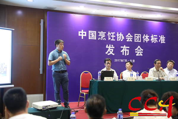 中国烹饪协会百合花工程办公室主任刘殿宇介绍“百合花”团体标准
