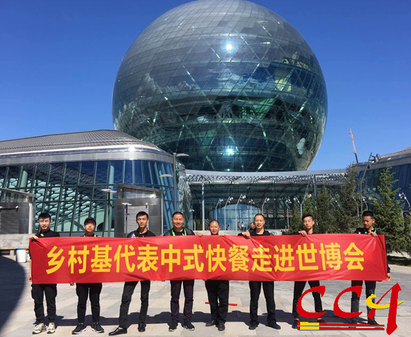 2017年阿斯塔纳世博会开幕以来。乡村基集团携旗下人气品牌“乡村基”、“大米先生”及“三十三碗黄牛肉面”入驻中国美食与文化馆,以自身独特风味吸引了来自全球的美食爱好者,成为一颗靓丽的中华小吃与快餐明星。在此期间,不论是“三十三碗黄牛肉面”带去极具重庆特色的“重庆小面、豌豆杂酱面、牛肉面”,还是“乡村基” 与“大米先生”分别带去的“超人气功夫鸡腿排”、“招牌米饭和酸菜鱼”,均受到世博会观众与游客们的喜爱,仅一个月便售卖上万份,成为最受欢迎的美食品牌之一。许多观众与游客在乡村基美食区就餐已不止一次,还有游客表示想亲自来中国感受乡村基的中式美味。