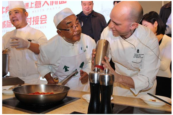 为贯彻落实习近平主席提出的“一带一路”宏伟倡议,加快“引进来,走出去”步伐,10月11日,具有“中华第一面”美誉的兰州牛肉拉面与闻名西方的意大利面在北京相遇,演义了一场别开生面的“兰州牛肉拉面遇上意大利面”美食文化对接活动,让现场嘉宾感受到餐饮文化的精彩和乐趣,两国饮食文化的交流增强了中餐走向世界的信心。