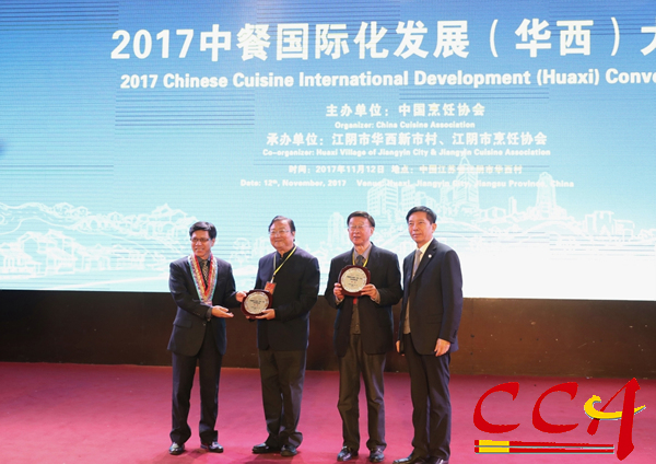 “2017中餐国际化发展(华西)大会” 11月12日在江苏省江阴市华西村隆重开幕。来自美国、德国、法国、奥地利、孟加拉等30个国家和地区的餐饮商会、中餐业协会代表,以及成都、顺德、澳门世界美食之都代表、国侨办中餐繁荣基地顺德区代表,中国—东盟旅游人才教育培训基地代表等150余位来宾参加了大会。中宣部、文化部、外交部、中国商业联合会、江苏省委省政府、江阴市政府等有关部门的领导应邀出席了大会。本届大会是继2016年8月“中餐国际化(华西)论坛”后此项品牌提升的一次年度盛会。