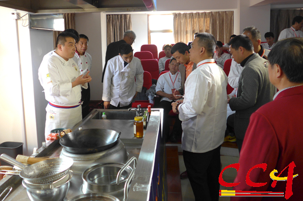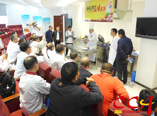 在学院现代化的教室里,代表们聆听了学院孟祥忍博士就扬州大学烹饪系的发展历程、国际交流、海外中餐繁荣基地建设等方面情况所做的详细介绍。孟博士介绍的海外中餐繁荣基地网上课堂引起了海外中餐名厨的高度关注与浓厚兴趣。他说,海外中餐繁荣基地是国侨办为侨服务、促进海外中餐繁荣发展与扬州大学共建的高端学习平台,是面向全球华人华侨中餐业的培训基地,基地建有中华美食教育培训、对外交流、宣传、研究和产业联盟五大平台,旨在进一步弘扬中华美食文化,积极推动海外中餐繁荣发展。代表们根据孟博士的指导现场用手机登录海外中餐繁荣基地微信公众号,马上看到了网上学习课堂、培训动态、行业新菜与教学视频,纷纷要求与基地建立合作,争取让更多的海外中餐界人士加入手机学习的队伍。