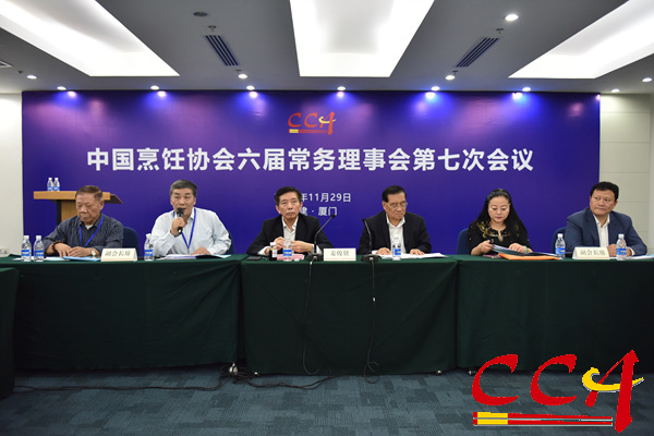 11月29日下午,中国烹饪协会在福建省厦门市召开六届常务理事会第七次会议,本次会议主要审议2017年中国烹饪协会工作报告;听取审议中国烹饪协会若干工作事项的议案;讨论常务理事提案。协会159名常务理事中的113名常务理事及其代表出席了本次会议。