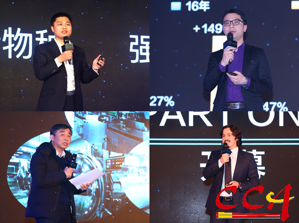 美团点评高级副总裁王莆中、美团外卖业务发展部总经理杨文杰和合谷董事长赵申、汉堡王中国区外送总经理安金进行演讲