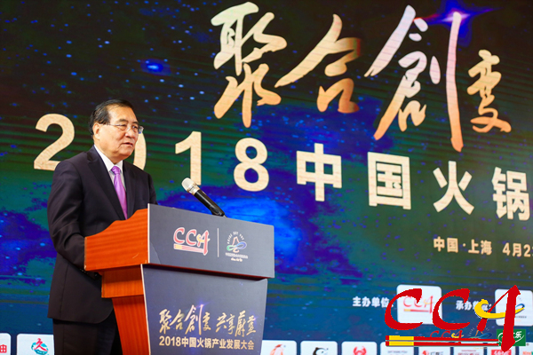 中国烹饪协会副会长、火锅委员会主席汤庆顺发布《2018中国火锅产业发展报告》