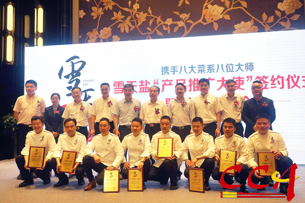 签约仪式上,来自四川、山东、广东、江苏、福建、浙江、湖南、安徽的兰明路、黑伟钰、董玉振、黄君、胡满荣、朱启金、任伟政、尹亲林等中国烹饪协会推荐的八位烹饪大师,作为雪天盐“产品推广大使”一同登台亮相。他们将本着“以盐驭材,以材入味,以味呈艺,以艺传心”的宗旨,传播湖南盐业雪天盐“为中国菜提味”的品牌理念,推出适应消费者需求升级的美食产品。让每一个使用雪天盐的家庭,都能跟着八位烹饪大师学习做好菜,用好盐,过好日子。