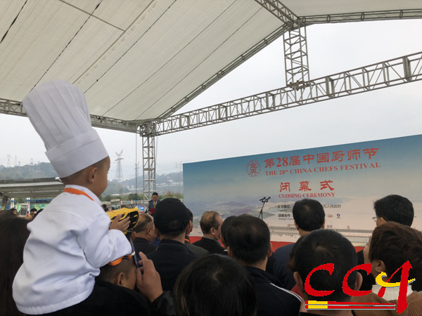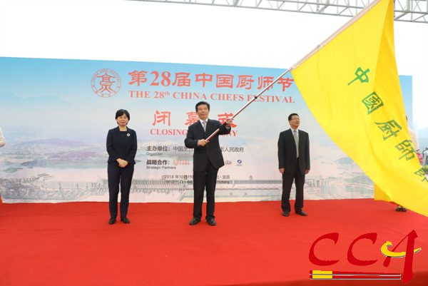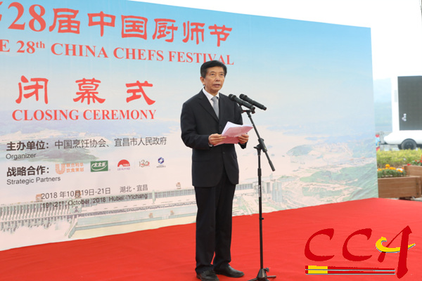 中国烹饪协会会长姜俊贤在闭幕总结中讲到,“由中国烹饪协会与宜昌市人民政府共同主办的第28届中国厨师节,在宜昌市商务局、湖北省烹饪酒店行业协会等多方的通力合作和大力支持下圆满落下了帷幕。”姜俊贤会长表示,在短暂而难忘的三天中,众多政府领导、行业专家、业界精英聚首美丽的宜昌,共同庆祝中国厨师节28周年,共同经历了名人堂尊师、导师的传承场景,共同感受了最美厨师的动人事迹,共同分享了金厨奖获得者的感言,共同见证了注册中国烹饪大师授勋,共同欣赏了名厨们的精品菜品,共同体验了楚菜的独特魅力,共同领略了宜昌的深厚文化,共同观摩了本届中国厨师节异彩纷呈的特色活动……规模宏大、内容饱满、特色突出的第28届中国厨师节的成功举办得益于宜昌市委市政府、宜昌市商务局、湖北省烹饪酒店行业协会领导重视、组织严密、团结协作、筹备充分、作风过硬。正是因为各方团结协作,确保了活动流程井然有序,取得了圆满的成功。全国近三千云集本届厨师节的同仁通过三天的活动,展示成就、切磋技艺、交流经验、规划未来,弘扬了中国饮食文化,展现了楚菜烹饪技艺,让承载着中华饮食文化传承与发扬重任的中国厨师们振奋精神、迸发力量,彰显出了中国烹饪的强大魅力和中国厨师的迷人风采。“我代表中国烹饪协会和中国厨师节组委会向为本届厨师节做了大量组织协调工作的相关部门、行业组织、参展客商和广大餐饮企业表示最衷心的感谢!向热情好客的宜昌人民表示最崇高的致敬!向高度关注本届厨师节并以极大热情报道本届厨师节的全国各地新闻媒体朋友们表示由衷的感谢!”