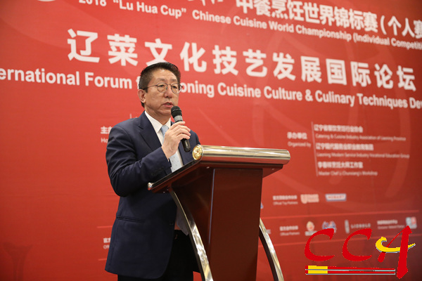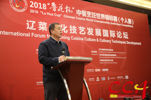 由中国烹饪协会与辽宁省商务厅主办的“辽菜文化技艺发展国际论坛”11月23日在沈阳隆重举办,辽宁省商务厅党组副书记、副厅长王广利、中国烹饪协会副会长边疆、李春祥、辽宁省文化遗产保护中心副主任胡柏、辽宁省餐饮烹饪行业协会会长崔韬、辽宁现代服务业职业教育集团执行理事长刘玉强、鲁花集团辽宁省总经理孙茂峰以及来自辽宁餐饮业、文化届代表,以及烹饪大师代表刘敬贤、童辉星、崔玉芬、陈进长、戴永良、杨国钦、李洪志,参加2018“鲁花杯”中餐烹饪世界锦标赛的国际评委及部分选手共200余人参加了论坛。
