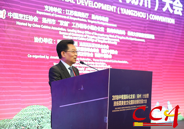 中国烹饪协会会长姜俊贤发表主旨讲话