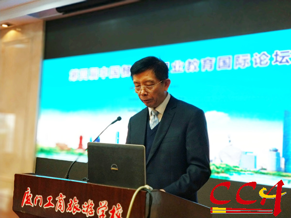 教育部职业技术教育中心研究所研究人员闫志勇、开平餐饮学校董事长夏惠汶、蓝带国际学院大中华区总监Sara Shang,分别就“改革开放40年中国职业教育现代化和国际化的成就与趋势”、“以工匠精神引领职业教育发展”、“一带一路背景下职业教育国际合作新模式”等主题内容做了主旨报告。