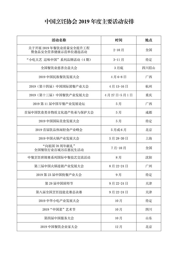 《工作报告》指出2019年是新中国成立70周年,是全面建成小康社会的关键之年。新时代的中国特色社会主义伟大事业,对餐饮行业发展和社会组织建设提出了新要求,全行业要自觉研究和适应新时代、新格局、新消费对餐饮行业发展提出的新需求,这是推动新时代餐饮产业发展的源动力,也是协会明确新任务、开展新服务、推动新发展的工作着眼点。结合国务院改善营商环境、促进经济发展和中央稳增长、稳就业的要求,协会2019年工作将坚持深化服务改革为主线,以“稳中求进、调整转型、创新平台、改革发展”为总基调,实现协会工作可持续发展。