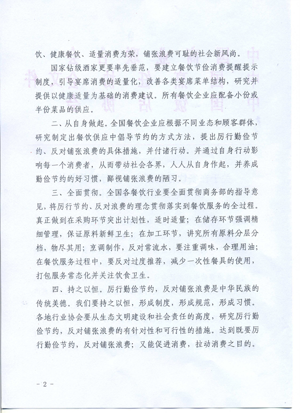 在餐饮行业落实“厉行勤俭节约 反对铺张浪费”的倡议书