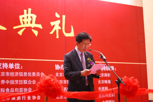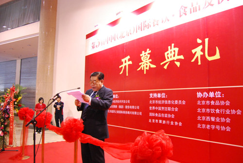 5月7日,由中国烹饪协会、北京烹饪协会主办,中烹协经济技术开发公司、中国全聚德(集团)股份有限公司、北京超异之旅国际商务顾问有限公司共同承办的第5届中国(北京)国际餐饮食品及供应商博览会在北京展览馆精彩开幕。中国烹饪协会苏秋成会长、北京烹饪协会姜俊贤会长等领导和参展的100多家餐饮供应商代表出席了开幕式。