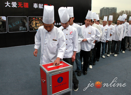 4月24日上午,晋城市餐饮住宿协会组织全市餐饮人“情系玉树”爱心捐款仪式。晋城市委常委、晋城市慈善总会会长赵学梅出席了捐款仪式。 晋城市十多家大中型酒店400多名厨师、服务员、酒店保安进行了现场捐款,现场共筹得善款114607元。
