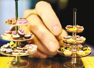 英国展出“微型”饮食 精致蛋糕让人垂涎欲滴