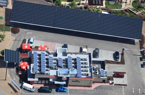 据Design-BuildSolar报道:位于德国Waghausel的汉堡王近日推出了节能餐厅,该项目的开发合作伙伴是Wirsol Solar太阳能公司。餐厅的设计融入使用了多种可再生能源,其中也包括太阳能光伏。