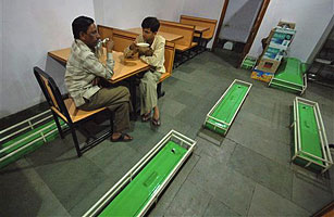 在你身边躺着尸体的时候,你的胃是不是会搅动而无法进食呢?对于新幸运餐厅的老顾客来说,这似乎不是问题。60多年前,新幸运餐厅就在一块墓地边上从一个小排挡开始运营。随着商业的蓬勃发展,当时的老板扩大了他的不动产,包括隔壁的十几个坟墓。在这个热闹的咖啡厅里,服务员在泛着绿色光泽的棺木餐桌中穿行,为顾客提供新幸运餐厅著名的黄油面包卷和奶茶。帮助餐厅老板建立和运行餐厅的奈尔坚信是墓地带来了好运说,“我们的餐厅能够越来越好是因为墓地的缘故”,可能对这家餐厅来说,墓地带来的不是死亡之吻,而是滚滚财源。