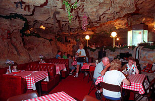 在距离密苏里河100英尺的地方,有一个洞穴餐厅对美食家和洞穴探险者开放。它处在一个石灰岩断崖边上的露营基地里。1989年,这家餐厅的前任老板戴夫提出了在这海绵状洞穴里开餐厅的设想。戴夫和他的妻子与一些工人爆破了月2000余吨的岩石创造了现在这样一个能够容纳225人就餐的空间。虽然吃的是传统的美国食物,例如牛排、鸡肉和鱼肉,但是在这里顾客可以透过戴夫在岩石上凿出来的全景窗户观赏美丽的河流和风景。在餐厅内,为了增加特色和独特风味,还有动物标本和小型人造瀑布及喷泉。餐厅的新主人加里戴尔似乎对这个地方非常有兴趣,不相信的话,你可以去尝试一下那里的美味海鲜拼盘~